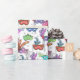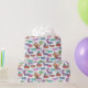 Den här Mardi Gras-omslutningen av pappra har en mönster av färgstarka maskeradmasker i rosa, grönt, blått, rött och lila på vit bakgrund. Designad av världsberömd konstnär Tim Coffey.