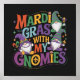 Utformningen har den lekande pun "Mardi Gras with My GNOMIES". Texten är en blandning av fet, kunkigt typsnitt och sjudande färg, med ord "Mardi Gras" och "GNOMIES" i det traditionella Mardi Gras färg av lila, grönt och guld. Tre vackra gnomer mellan tecknad och stil är de centrala tecknen. De har alla på sig stolthattar och firar med bestrykade halsband, festliga trollspön och andra Mardi Gras-symboler som loppur-de-lis. Hela bilden ställs in mot en svart bakgrund, vilket gör att den ljusa färger popup-bilden blir ännu starkare.