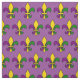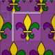 Fabric with seamless mönster with fleur-de-lys (lilly blommor) in the färg of New Orleans Mardi Gras. lila-, gyllene och grönt-design på lilans bakgrund