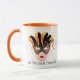Den här orangen och det vita mugg har en bild av Mardi Gras masker över petite golden-färg stjärnorna på vit bakgrund. Texten " Låt bran rulla" står under masken på vardera sidan av mugg. Anpassa det här objektet eller köp som designat. Färg: handtag för orange och insida, vit bakgrund, gyllene stjärnor och masker för gyllene orangar och svart färgad. Bilder och text som skrivs ut på.