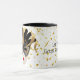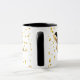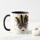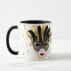 Den här kombinationen svart och vitt mugg har en bild av en fin Mardi Gras-mask över guldkonfetti med texten "Låt bran rulla". Anpassa det här objektet eller köp som designat.