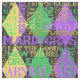 En fin sensm av Mardi Gras ord och fraser som är ovanliga över gult, grönt och lila diamanter. Det är Mardi Gras-tiden.