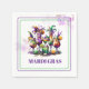 This paper napkin is shown in a festive Mardi Gras drinks celebration print.