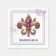 This paper napkin is shown in a festive Mardi Gras jeweled Fleur de Lis print.