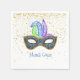 Denna pappra napkin visas i vitt med guld-stjärnor med ett festive Mardi Gras carnival mask print. Anpassa det här objektet eller köp som det är.