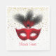 Den här storleka lunchdockan visas med en fin Mardi Gras-karnival maskutskrift. Visas på vit papper napkin. Visas som standard-luncheon storlek. Anpassa det här objektet eller köp som det är.
