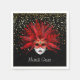 Denna storleka, , pappra napkin visas med en festive Mardi Gras carnival mask print på den svarta bakgrunden färg. Svart på vit papper napkin. Anpassa det här objektet eller köp som det är.