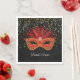 Denna pappra napkin visas i svart på en vit napkin med guld-stjärnor och ett färdigt Mardi Gras-karnival-masktryck. Visas som standard-luncheon storlek. Anpassa det här objektet eller köp som det är.