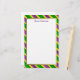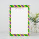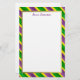Mardi Gras längs buktkusten är ett stort firande. Denna personligbrevpapper reflekterar de celebratory färgerna--Ljust - grönt, lilor och guld. Randarna skapades by räcker målade vattenfärger som applicerades till en guld- bakgrund.