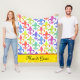 Mardi Gras fleece-filten har en mönster av vattenfärgsregnbåge fleur de lis på vit bakgrund. Längs grund är kant en gult rand med ord Mardi Gras i svart typografi, som kan lämnas som den är eller personifieras. Designad av världsberömd konstnär ©Tim Coffey.