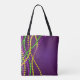 Den här väskan, som är täckt i lila med Mardi Gras pärlor på den, är bara sak för att bära era parad godis.