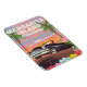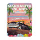 Venezuela, Margarita Island vintage stil-reseaffisch av vacker klassisk bil på stranden.