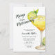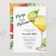 Superfärgglad Margs före bröllopsdusch-inbjudan har en stor akvarell-margarita på framsidan och garnering på baksidan.