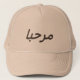 Djärv text "Marhaba" i arabiskan = välkomnandet, hej - skrivs det bruna typsnitt ut för mörk på en kaki- hatt. Du kan välja en andra färger /styles, om du väljer att skräddarsy.