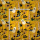 Roligt Mariachi-bandet mönster på guldgultens bakgrund. Mönster har gitarrer, violiner, harper, trumpeter och sombreros.