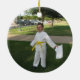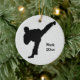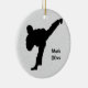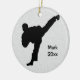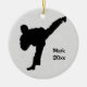 Underbar kampsportjulprydnad för spelare som du vet. Bekläda presenterar en silhouette av en karate sparkar. Nedanfört är teckningen ett beställnings- utrymme för ett namn och ett år. Baksidaen har ett utrymme för en anpassningsbar att fotografera av ditt primat.