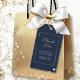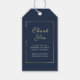 Denna eleganta marinblå, guld- och vitfavorit etikett är minimal och modern. En guldram accentuerar den skrivna tacksamheten och ditt meddelande