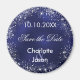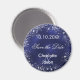 En Spara datum magneter för dina bröllop gäster. En blå bakgrund, vit text. Den blå färg är ojämn. Dekorerad med faux silver-gnistor. Anpassa och lägg till datum för namn och bröllop.