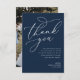 marin blå och vit typografi bröllop tack kort