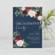 Boho Marin Burgundy och Rosengrönt Blommig Förlovningsfest Inbjudan. Denna inbjudan kännetecknas av boho burgundy och rosor i rosengrönt med två moderna typsnitt som formar trenderna för nuvarande och framtida festliga evenemang.