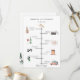 Rustik färgstark vattenfärg illustrerade bröllopsdag inslag, tidslinjeprogram. Kortet har kyrka, kamera, flaska med glas, plattor, musik noter, tårta, bukett och retrobil. Kortets baksida har vattenfärgsblå, vit och blommigt och gräns.