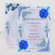 Meddela din speciella dag med stil med detta eleganta blå blomstermotiv "Spara datumet"-kort. Med mjuka akvarellblommor i marinblå och dammig blå nyans är denna romantiska design perfekt för klassiska, moderna och formella bröllop.