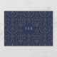 Elegant och utsmyckad virvelramsdesign i guld på en redigerbar marinblå bakgrund. Damaskusmönster med monogramdesign på baksidan, modern, elegant och klassisk, perfekt för vintagebröllop, art deco-bröllop året runt. Redigerbar bakgrundsfärg som passar din bröllopstema. Anpassa den med all information du vill att dina gäster ska veta.