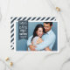 Klassisk spara datum fotoannonsering med marin och vit diagonala ränder mönster och marin etikett. Detta moderna spara datum platta kort är helt anpassningsbart.