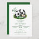 Sätt igång en oförglömlig fest med denna marina och gröna fotbollsinbjudan! Med en cool vattenfärg fotboll, fet typografi och en plats för ditt barns foto är denna inbjudan perfekt för alla unga fotbollsfans födelsedag. Anpassa med festdetaljer och gör dig redo för en mål-värd händelse. Perfekt för pojkar och flickor som älskar spelet!