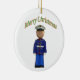 Detta prydnadsföremål dekoreras på ena sidan med en marin leksak och ord "God jul" och på andra sidan med Julgran och ord "God jul".