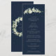 En mörk marin fyra-rätters vinterbröllopsmeny, med en stjälk handmålade snöbär och eukalyptus på framsidan och en krans på baksidan. All text är helt redigerbar och de spridda prickarna på fram- och baksidan kan raderas innan beställning om så önskas. Vänligen se denna kollektion i min butik för menyer med alternativa blomsterarrangemang och i olika storlekar/färger/ former. Koordinerande artiklar finns också tillgängliga.