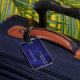 En chic marin blå bakgrund som dekoreras med faux glitter drops, färgdroppstift.Den blå färg är ojämn. Anpassa och lägg till din familj namn och monogram brev. Namn är skrivet med ett modernt handskript i stil med dekorationer. Om du bara vill behålla utslagen tar du bort exemplet namn lämnar du blankstegen eller symbolerna framför och efter namn. Ljusblått och vitt brev. Tillbaka: namn och kontaktinformation