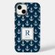 Elegant Modern Nautical Anchor Marine Navy Blue White Monogrammed Monogram, initial, Custom Name Mönster. Anpassa detta vackra iphone case med ditt första och namn.