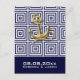 Nautiskt grekiskt nyckelband marinblått och vitt ankar bröllopsinbjudningar . Nautiska bröllopspresenter.