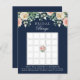 Marinblå Blommig Bröllopsfest Bingo Spelkort