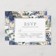 Marinblå Blommig Mönster Vattenfärg Bröllop OSA Kort