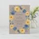 Marinblå Blommig Rustik Bröllop Inbjudningar