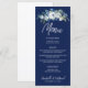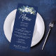 Marinblå Blommig Vinterbröllopsmiddag Meny