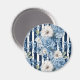 Marinblå Blommiga Ränder Bröllopsdusch Magnet