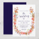 Marinblå Boho Rustik Blommig Krans Höst Bröllop Inbjudningar