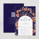 Förhöj din marinblå och vita bröllopsinbjudan med detta Boho Höst Rustika Vildblomma Båge Bröllops RSVP Inclosure Kort med en skannbar QR-kod för enkel online-RSVP. Designad för att komplettera ett bohemiskt höstbröllopstema, visar detta kort handmålade akvarellblommor i rika, säsongsbetonade färger, inklusive terrakotta, kräm, bränt orange, persika, mjuk rosa, korall, gul, lila och bränd umber.