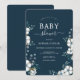 Marinblå bomull blommor eleganta Baby Shower Inbjudningar