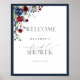 Välkommen bröllopsfestgäster med denna vackra eleganta marinblå burgunderfärgade akvarellblommiga välkomstaffisch för bröllopsfest, med delikat handskriven typsnitts typografi och en bukett av marinblå och burgunderfärgade blommor, kantad i marinblått. Del av en koordinerad serie. Se hela serien här: https://www.zazzle.com/collections/elegant_navy_blue_burgundy_botanical_bridal_shower-119592964187643986 Kontakta formgivaren för matchande produkter. Copyright Anastasia Surridge för Elegant Invites, alla rättigheter förbehållna.