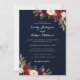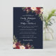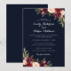 Marinblå burgunderfärgad blomsterbröllopsinbjudan inbjudningar