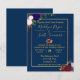 Marinblå Burgunderröd Guld ramad Guld vigselinbjud