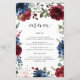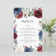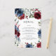 Marinblå Burgundy Rosenskär Bröllopsmeny Kort