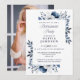 Denna eleganta marinblå och vita blommiga pensionsinbjudan kan anpassas med din information i modern typografi och ett foto på baksidan. Designad av Thisisnotme©