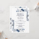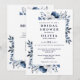 Denna eleganta marinblå och vita blommiga bröllopsdusch-inbjudan kan anpassas med din information i modern typografi med din registrerings QR-kod på baksidan. Designad av Thisisnotme