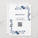 Marinblå elegant blomsterbröllopsdusch QR-kod Inbjudningar