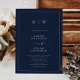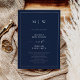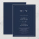 Marinblå elegant kant och monogram bröllop inbjudningar
